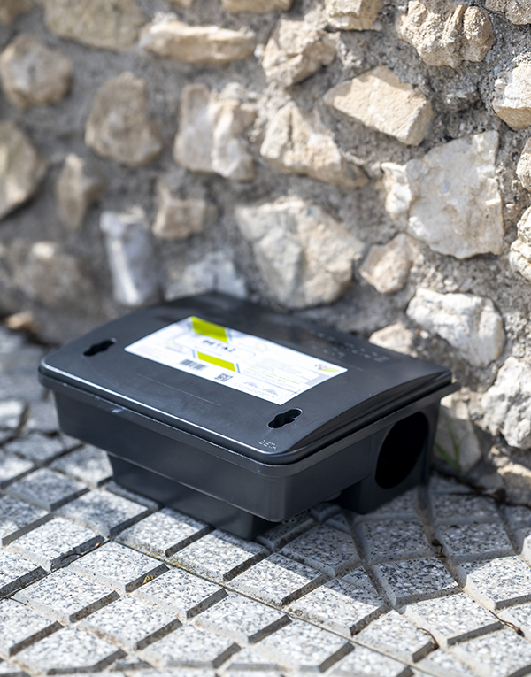 Contenitore in polipropilene adatto per rivelare la presenza di topi e altri roditori. É costituito da due ingressi, astina interna per il posizionamento e fissaggio dell’esca rodenticida, doppia chiusura di sicurezza con apposita chiave in dotazione. La struttura in polipropilene lo rende resistente ad urti e agenti atmosferici ed è pertanto particolarmente indicato per utilizzo in esterno. Distanziatore e vaschetta interna asportabile inclusi, è inoltre dotato di sistema per fissaggio a muro.